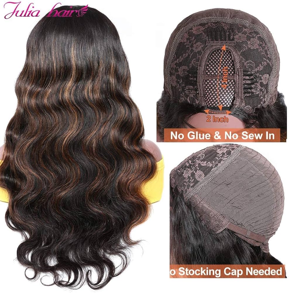 Julia Hair 10a Highlight U Part Wigs Body Wave Human Hair Ombre Wigs For Women 180 Density Brazilian Remy Human Hair Glueless Full Head U Shape Clip In Half Wig Balayage